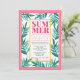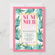 A hot pink border and green palm fronds create a sizzling, watercolor, summer party invitation. <a href='http://www.freepik.com/free-vector/beautiful-summer-party-brochure-with-hand-painted-palm-leaves_896680.htm'>Designed by Freepik</a>. <br/><br/>The card is easy to customise with your wording, font, font colour, paper shape options and choice of six paper types.<br/><br/>Not exactly what you're looking for? All our products can be custom designed to meet your needs at no extra charge.<br/><br/>Simply contact us at heartfelthelper@gmail.com<br/><br/>Coordinating products available: Just ask us!