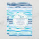 A delightful horizontal-line pattern of blues with white with a round centre decal that holds your party details. Perfect for a boy baby shower. (<a href="http://www.freepik.com/free-vector/watercolor-abstract-summer-pattern-background_1196817.htm">Designed by Freepik</a>). <br/><br/>The card is easy to customise with your wording, font, font colour, paper shape options and choice of six paper types.<br/><br/>Not exactly what you're looking for? All our products can be custom designed to meet your needs at no extra charge.<br/><br/>Simply contact us at askcottonlamb@gmail.com.<br/><br/>Coordinating products available: Just ask us!