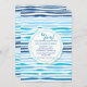 A delightful horizontal-line pattern of blues with white with a round centre decal that holds your party details. Perfect for summer celebrations. (<a href="http://www.freepik.com/free-vector/watercolor-abstract-summer-pattern-background_1196817.htm">Designed by Freepik</a>). <br/><br/>The card is easy to customise with your wording, font, font colour, paper shape options and choice of six paper types.<br/><br/>Not exactly what you're looking for? All our products can be custom designed to meet your needs at no extra charge.<br/><br/>Simply contact us at askcottonlamb@gmail.com.<br/><br/>Coordinating products available: Just ask us!