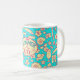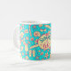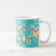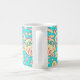 Summer pattern on turquoise background: umbrella,s coffee mug