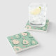 The coasters are gorgeous, a quality feel and heavy weight. They look like a precious archeological find. A rustic stone juxtaposed with a modern floral black and white print. I like the way the print goes slightly imperfect on the cut stone edges giving them a kind-of natural beauty.