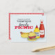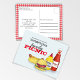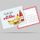 This design features a summer, barbeque, BBQ, barbecue postcard invitation, with a casual, picnic theme, perfect for a family reunion, or any fun, backyard outdoor party, with whimsical hamburger and hotdog