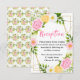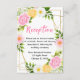 This fun and whimsical wedding reception enclosure card features watercolor pink, yellow and white flowers with foliage on a gold geometric frame. The text combines handwritten script and serif fonts for a stylish and modern look. This is perfect for a spring or summer rustic wedding.