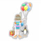 The girl wearing diving gear for the pool party is holding a bunch of balloons in her hand while the penguin is holding one balloon.
