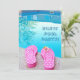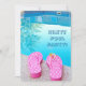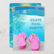 Pink and white polka dot flip-flops by swimming pool for summer pool party invitation.