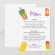 Summer Popsicle Baby Shower Menu This Baby Shower Menu Card complements my cute "Popsicle Ice Cream summer party" Baby Shower collection. You will find the Invitation, Inserts, Signs, and matching items in my Zazzle shop.