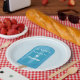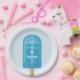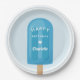 Designed to match our popsicle kids' birthday party invitations, these cute personalised paper plates feature a bright blue popsicle in the centre, with the words "Happy Birthday [Name]" in white retro lettering adorned with a heart.