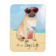 It’s a dog’s life! Be cool and celebrate the dog days of summer with this cute Pug wearing sunglasses and relaxing with a drink.
