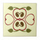 Think of warm summer with green leaves accenting a red apple slice centre of this yellow tile.