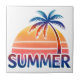 Summer retro sunset palm tree ceramic tile