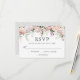 Beautiful pink roses and mixed garden blooms with trailing leaves and branches highlight this lovely watercolor floral wedding RSVP card. Personalise the required response date using the easy text template.
