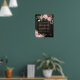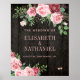 Personalised modern rustic country / romantic farmhouse wedding welcome sign poster featuring beautiful blush pink and red burgundy roses corners with natural green foliage and two little dark red hearts on a dark brown barn wood like background. ++++++++++++++ Easy to customise with the bride and groom names, date and place. +++++++++++++ Suitable for spring or summer outdoor garden or backyard wedding ceremonies and receptions.