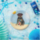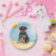 It’s a dog’s life! Be cool and celebrate the dog days of summer with this cute Rottweiler wearing sunglasses and relaxing with a drink.