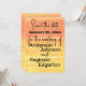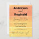 Summer Rustic Casual Yellow Peach Happy Mellow Pattern Save the Date cards. Let everyone know that you're ready to celebrate your casual summer nuptials, renewal of vows or other occasion with this Happy Mellow orangey yellow and rosy peach casual pattern design. This design works for all ages and genders, and is great for spring and summer but can be used all year. The Happy Mellow colour scheme is yellow with a rosy peachy orange that is more vibrant and full of life than the peach fuzz trend. It's a great colour scheme for when you want to be near the trend of the 2024 colour of the year, but you don't want to look exactly like everyone else. This colour scheme was created long before the colour of the year announcement, so you can always tell people that you were ahead of the curve, no matter when your event is. Design created from an original photograph taken by the designer of a sunset in San Diego, California, then digitally texturised to give it that almost painted look. Design description: The design is in four parts. The top part is a rosy peach colour, the second part goes from the rosy peach colour to a medium yellow, and the bottom two sections are of the medium yellow. The sections are divided by rough lines that are lighter than the main colours. The entire design has spots that make it look distressed, as if the colours were casually and incompletely applied. Same underlying colour design on both sides. Text description: The front text has the text template Save the date for the wedding of in a casual script font over the top rosy peach section. Underneath that, templates for the names of the two people getting married, in a large bold rounded font. The eye is drawn to the names. Below that, in the same smaller script font, a template for the date. The back text copies the same first name templates from the front and put them on the top rosy peach section. Below that, the date on the front is copied in a much larger version of the same script font in the section that transitions from peach to yellow. Below that, templates in smaller bold font for your wedding venue, city/state, and wedding website. At the bottom, a template in small script font for your tagline, or change the font and use your hashtag, or leave blank.
