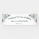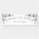 Summer Sage Wedding Banner designed with clusters of soft pastel Pink and Sage Green floral, with Sage Green text on a white background. The text includes: Welcome To Our Wedding, and The Bride and Groom's Names. To personalise, simply insert the Bride and Groom's Names into our easy template, replacing the sample text. Be sure to view the complete Summer Sage Green Floral Wedding Collection for matching stationery and accessories.