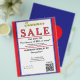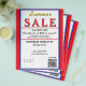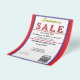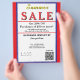 Jewellery or any business type supplies. Patriotic red, white and blue background. Insert Sale price and date details. Upload Your Logo, or delete to leave area blank. Insert Name and Website, Social Media Handle, or other contact QR Code. Summer written in yellow script. Sale written in large red typography. Thank You is written in white inside large red heart against deep blue background on backside. Original Design by TamiraZDesigns.