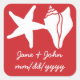 This cherry red sticker features a white starfish and seashell, accenting text that can be customised for your special summer or beach-themed event. These stickers are perfect for decorating gift bags at weddings or party favours for any special event or for use as save-the-date stickers that your invited guests can put in their keepsake collections. Be sure to check out the other products in the Summer Seashells in Cherry set to create a truly coordinated look for your event.