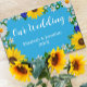 Summer blue sky featuring golden yellow sunflowers, daisies, and assorted wildflowers with botanical greenery