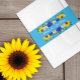 Summer blue sky featuring golden yellow sunflowers, daisies, and assorted wildflowers with botanical greenery