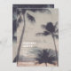 Summer soiree invitation featuring a beautiful tropical island scene with palm trees and a gorgeous blue sky.