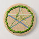 A sunshine yellow and sky blue pentacle is encircled by a stand of summer trees in this simple Litha design, which is one of my attempts to create pentacles depicting each of the 8 Wiccan holidays (sabbets)