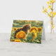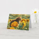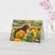 A summer solstice card with a cute tiger striped orange cat watching a butterfly in a field of summer sunflowers.