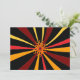 This invitation to a summer solstice party features a wild abstract geometric pattern of the sun and it's rays in colours of red, yellow, gold, orange and brown on a pure black background. Easily customise the text on the back with your personal party information.