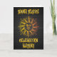 Beautiful Happy Summer Solstice Card . Design features of Yellow Gold Text and Sun Icon On the front. Blessing and your text in side.