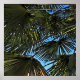 the summer spirit expressed in palm leaves , sunlight and blue sky
