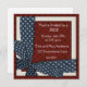 Party invitation in red, white and blue with faux ribbon and bow wrapped frame in blue with white stars. A great patriotic party invitation for the Fourth of July or any occasion. Easy to customise and comes with envelopes and your choice of paper.