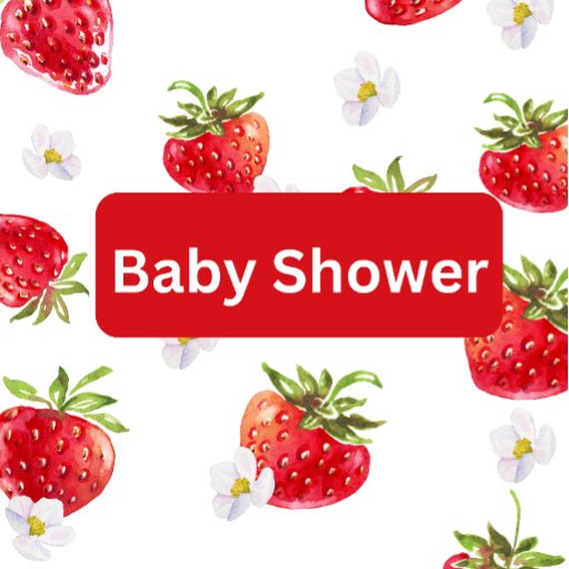 The invitation and baby shower theme captures the essence of a sunny summer day with a delightful strawberry-themed design. A background of bright, cheerful colours reminiscent of a clear blue sky and vibrant green grass sets the stage. Adorning the corners are playful illustrations of plump, juicy strawberries, accompanied by small white flowers that add a touch of whimsy and freshness. Embrace the warmth of the season and indulge in a day filled with love, laughter, and delicious treats. Perfect for a summer baby shower, perfect to combine with picnic, floral garden or tea party decorations. Use the template to add in your text for customisation.
