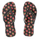 Cute red strawberry pattern flip flops on black background. Matching items available. Original art from artists own illustrations. Please use the message me button below for help with further customisation and special requests. © Zoe Chapman Design