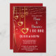 Romantic hearts and string lights I Do wedding BBQ invitations for summer- Deep red background. Across the top are strands of romantic, twinkle string lights and hanging gold hearts. Personalised with couple's names in palest grey, handwritten style script. Back has matching solid, deep red background, which may be changed to any colour. Note: All images are printed. Use the Customise It button to change anything - font styles, sizes, colours, or placement. Elegant red couples BBQ invites complement romantic wedding themes, elegant weddings, outdoor weddings, red and gold wedding colours, and summer weddings. We have coordinating, red and gold hearts wedding supplies and decor in our Zazzle.com/angela65* shop.