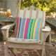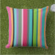 Vibrant stripes in shades of pink, red, yellow, green, purple, black, orange, turquoise, and more adorn this colourful throw pillow!
