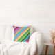 Vibrant stripes in shades of pink, red, yellow, green, purple, black, orange, turquoise, and more adorn this colourful throw pillow!