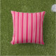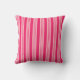 Throw pillow in a summer themed striped pattern with a summer, beach feel, in deep fuchsia pink accented with white ,
