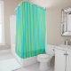 Shower curtain in a striped pattern with a summer, feel, in turquoise / peacock and light lime, accented with white and cobalt blue