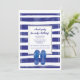 Having a beach or pool bash? This blue and white towel with flip flops is perfect for gathering friends by the pool! (<a href='http://www.freepik.com/free-vector/striped-summer-card-with-flip-flops_1112955.htm'>Designed by Freepik</a>).