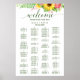 This summer sunflower alphabetical seating chart poster is perfect for a spring or summer wedding. This sign can be used to organise your guests alphabetically or by table number. The design features floral greenery with bright yellow sunflowers and pink gerbera flowers. This wedding poster includes enough room for up to about 120 guests. Make room for more (or less) guests by clicking the "customise" button and decrease or increase the size of the font. In addition to the placement of each guest, personalise this sign with the names of the bride and groom and the wedding date.