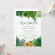 This summer sunflower wreath vow renewal invitation card is perfect for a spring or summer vow renewal ceremony and celebration. The design features a floral greenery wreath with bright yellow sunflowers and pink gerbera flowers.