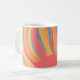 This mug has a nature design of a sunrise made of curvy lines in red, yellow, and orange, a sun, and the sky.