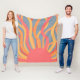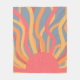 This medium fleece blanket has a nature design of a sunrise made of curvy lines in red, yellow, and orange, a sun, and the sky.