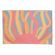 This pillowcase has a nature design of a sunrise made of curvy lines in red, yellow, and orange, a sun, and the sky.