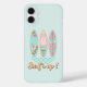 Surfboards featuring tropical island designs over Surf's up! text. Customise the background colour.