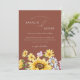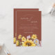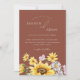 Celebrate your love amidst the vibrant beauty of summer with our Botanical Sunflowers Terracotta Floral Wedding invitation. Inspired by rustic country charm, this invitation features lush greenery and bursts of sunny yellow florals, evoking the joy of a sun-kissed meadow on a striking terracotta background. With delicate wildflowers dancing around bold sunflowers, it captures the essence of a springtime romance blooming into eternal summer love, along with the delicate detail of the couple's initials set in a stylish monogram on the back. Set the tone for your special day with this invitation, inviting guests to join you in a celebration of love amidst the enchanting allure of nature's bounty.
