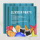 A summer-theme invitation with vivid colours and a collection of items indicative of summer fun. Perfect for your pool party, beach house party, birthday celebration, graduation party and more.