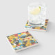 The coasters are gorgeous, a quality feel and heavy weight. They look like a precious archeological find. A rustic stone juxtaposed with a modern floral black and white print. I like the way the print goes slightly imperfect on the cut stone edges giving them a kind-of natural beauty.