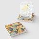 The coasters are gorgeous, a quality feel and heavy weight. They look like a precious archeological find. A rustic stone juxtaposed with a modern floral black and white print. I like the way the print goes slightly imperfect on the cut stone edges giving them a kind-of natural beauty.