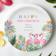Summer Tropical Flamingo Happy 1st Birthday Party Paper Plate
