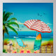 I designed a summer vacation on the beach, with relaxation in mind. Birds fly in the blue sky, palm trees sway in the breeze, and colourful flowers bloom all around. The sound of seagulls echoes in the air, as beach chairs and umbrellas dot the shoreline.